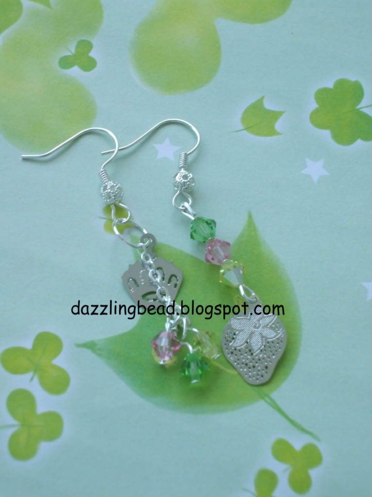 Strawberry Crown Charm with Green, yellow & Pink Swarovski Crystal, measring 3-3.5cm.