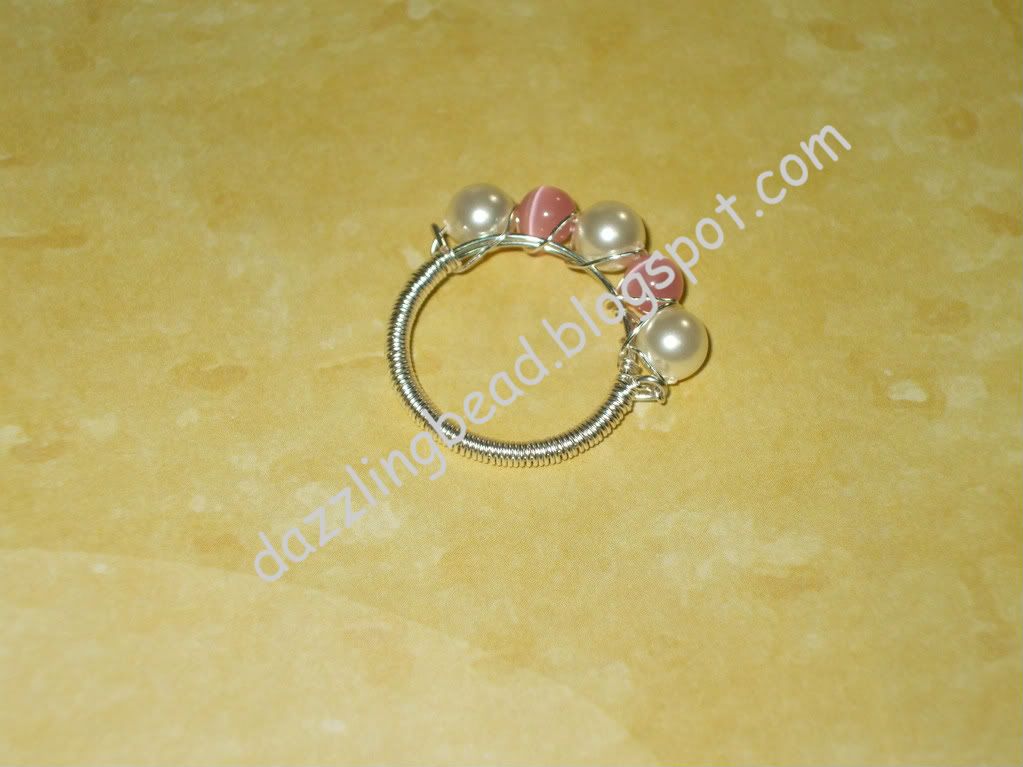 Wrapped with Tarnish Resistant White wire and cream Swarovski pearl and Pink cateye.