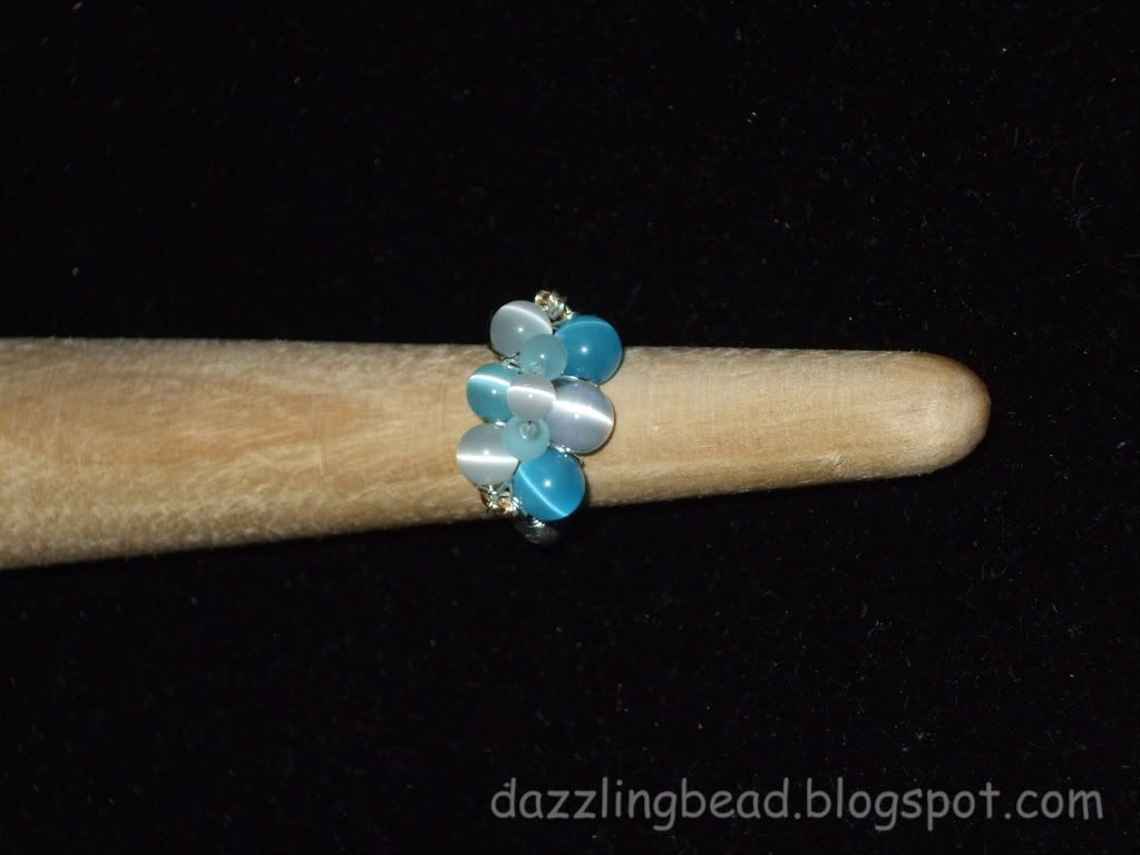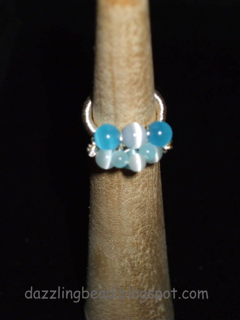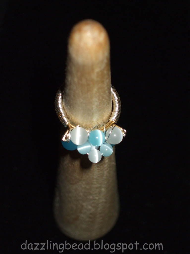 Also wrapped with Tarnish resistant white wire with blue, white and grey cateye of different sizes.